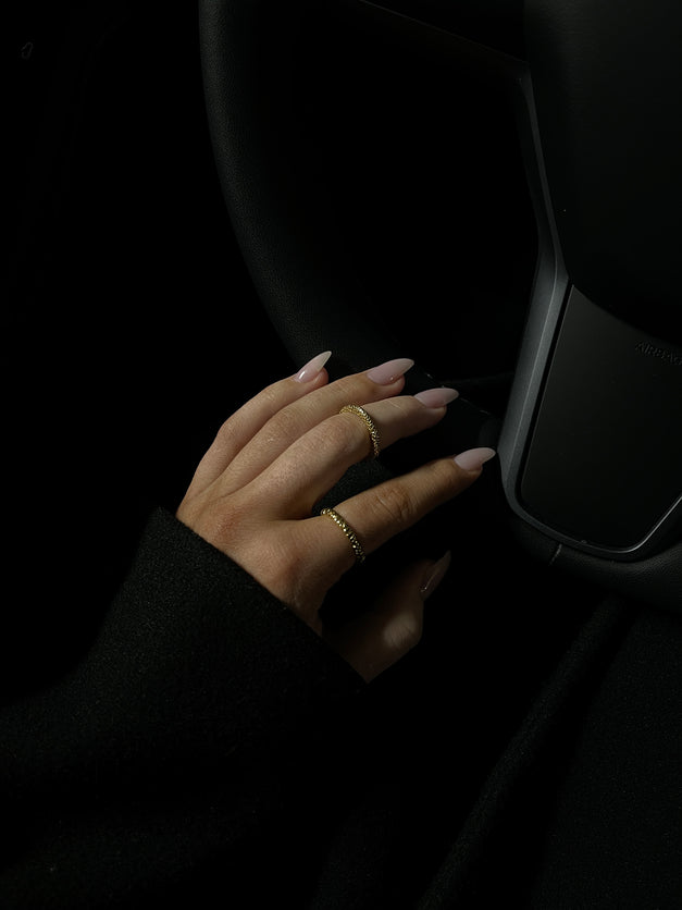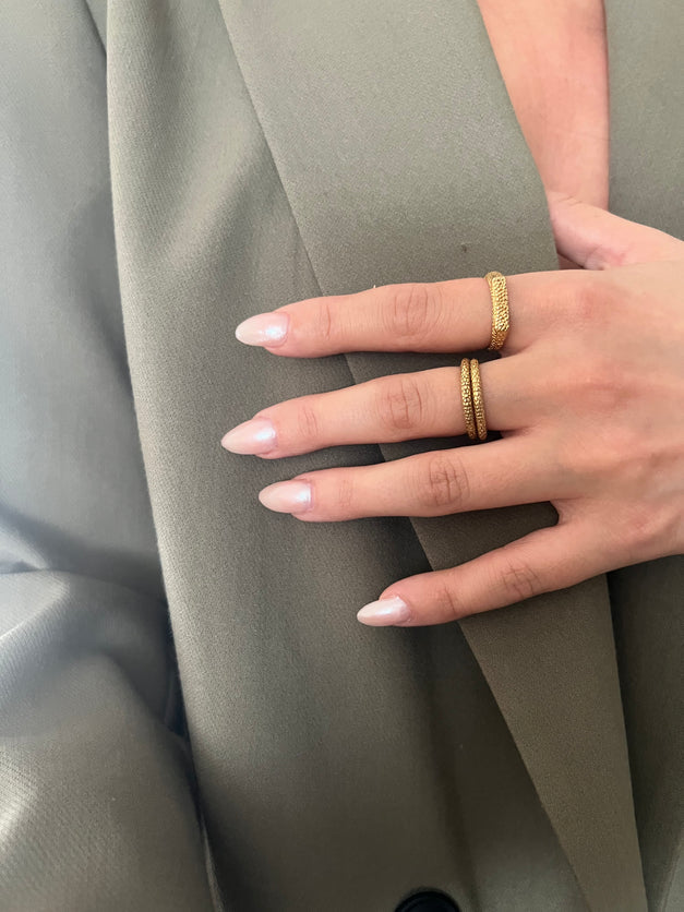 HIL hringur úr HIL línunni endurspeglar sprunginn hraunflöt frá undrum eldfjalla. Einföld en glæsileg hönnun fyrir öll tilefni.